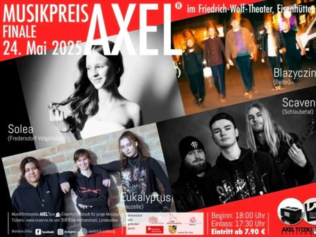 2024 habe ich mich mit meinen eigenen Songs beim Axel Musikpreis der Axel Titzki Stiftung beworben. Hier konnte ich den 3. Platz belegen und meine Lieder vor prominenter Jury wie Nick Page von den "Blind Passenders", Jana Gross von "Bell, Bock und Candle" und Linda Feller vorstellen.